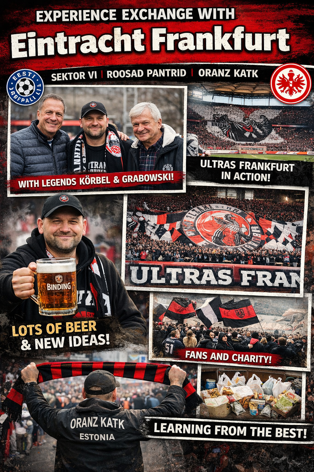 С нами встретились и легенды клуба: Karl-Heinz Körbel, который сыграл за клуб 720 матчей, и Jürgen Grabowski — чемпион мира 1974 года. Интересно, что у Ultras Frankfurt нет одного руководителя. Группой управляет актив — несколько человек, которые располагаются в разных секторах стадиона и заводят болельщиков. Для нас было важно увидеть, что фанаты активно занимаются благотворительностью и помогают людям, попавшим в трудную жизненную ситуацию.